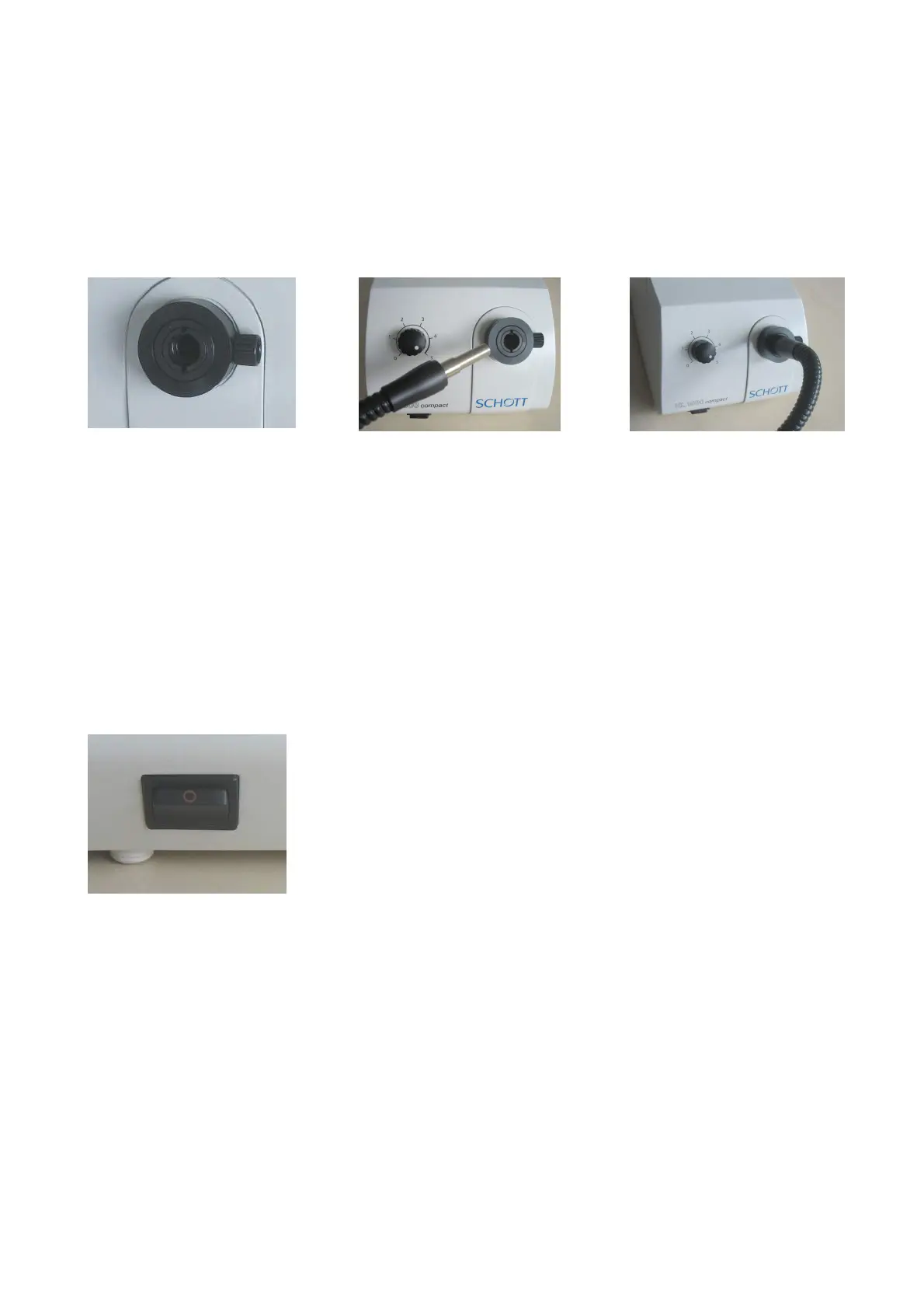 Zunächst die Feststellschraube (3) der Lichtleiteraufnahme (2) öffnen, durch Drehen gegen den