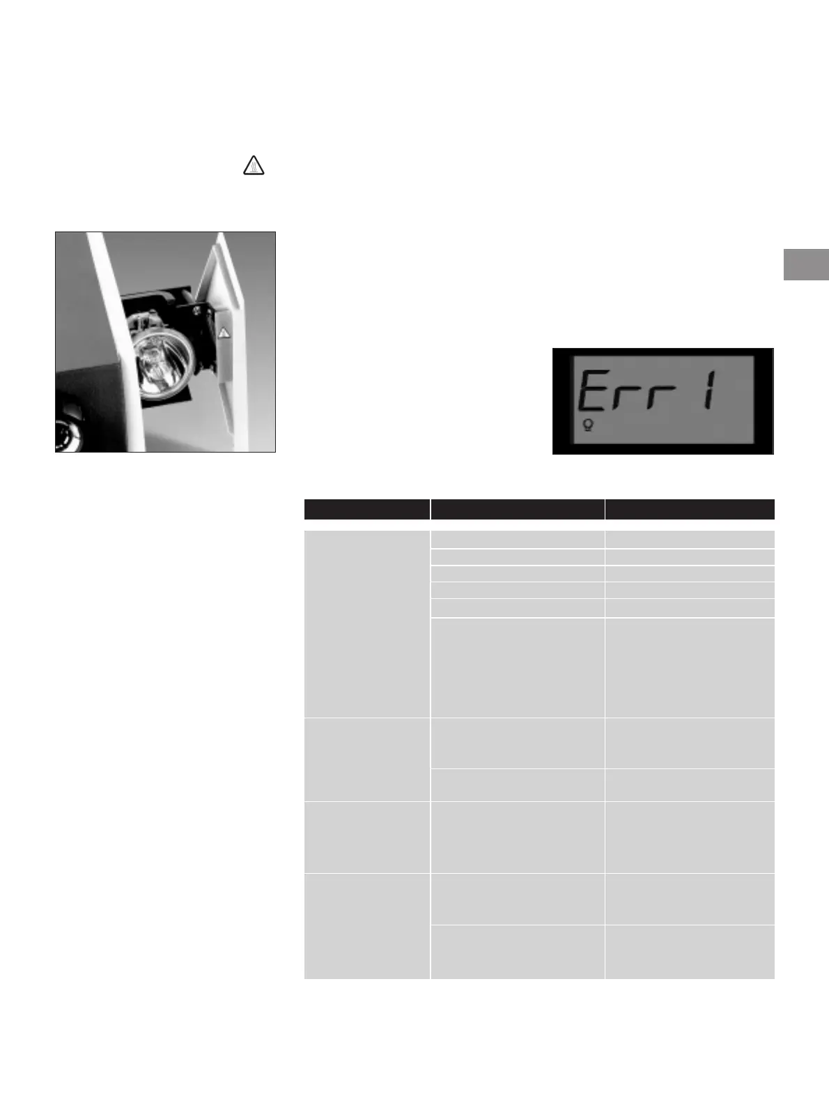 „Err1” Non c’è lampada. A sorgente di luce spenta