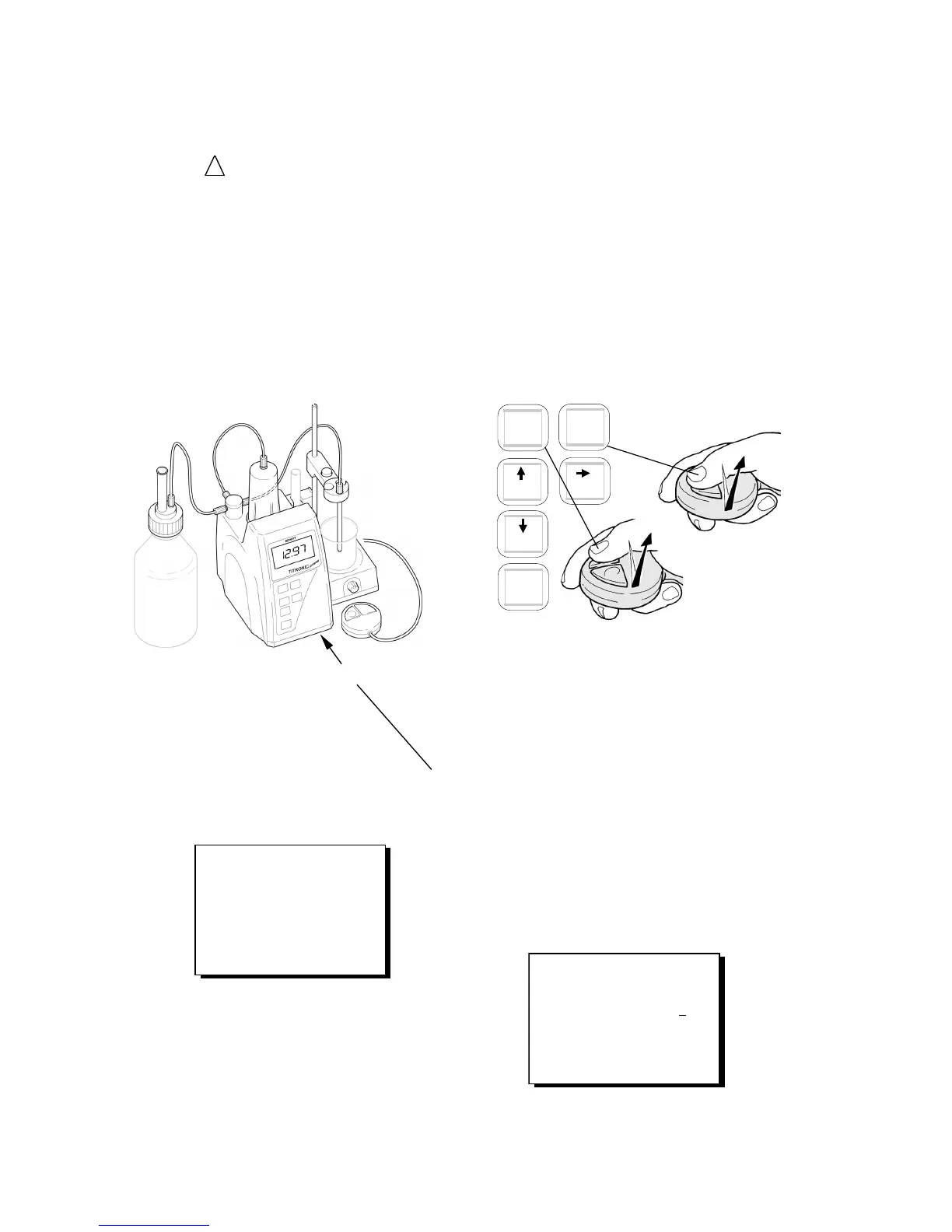 During sucking in of dosing and titration solution one has to take care that the suction hose is immersed in