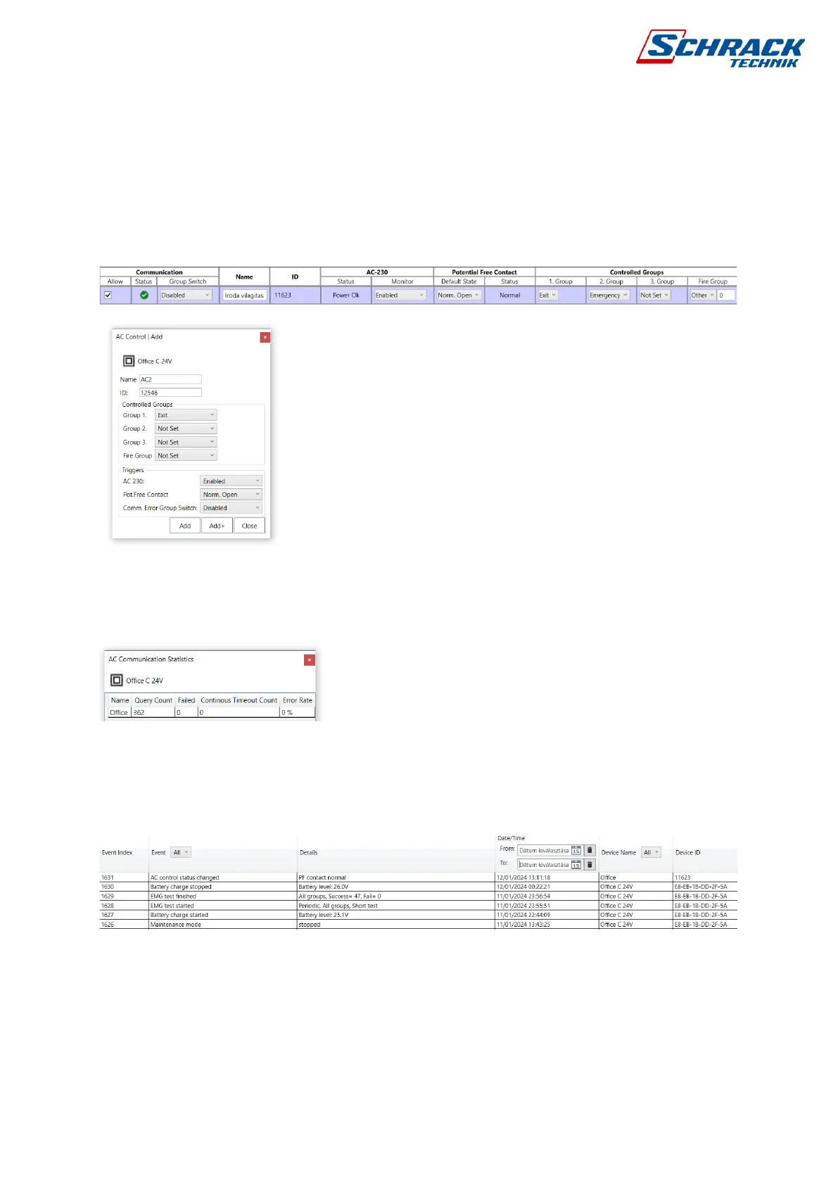 are automatically overwritten. The event list can be filtered and saved in pdf format.