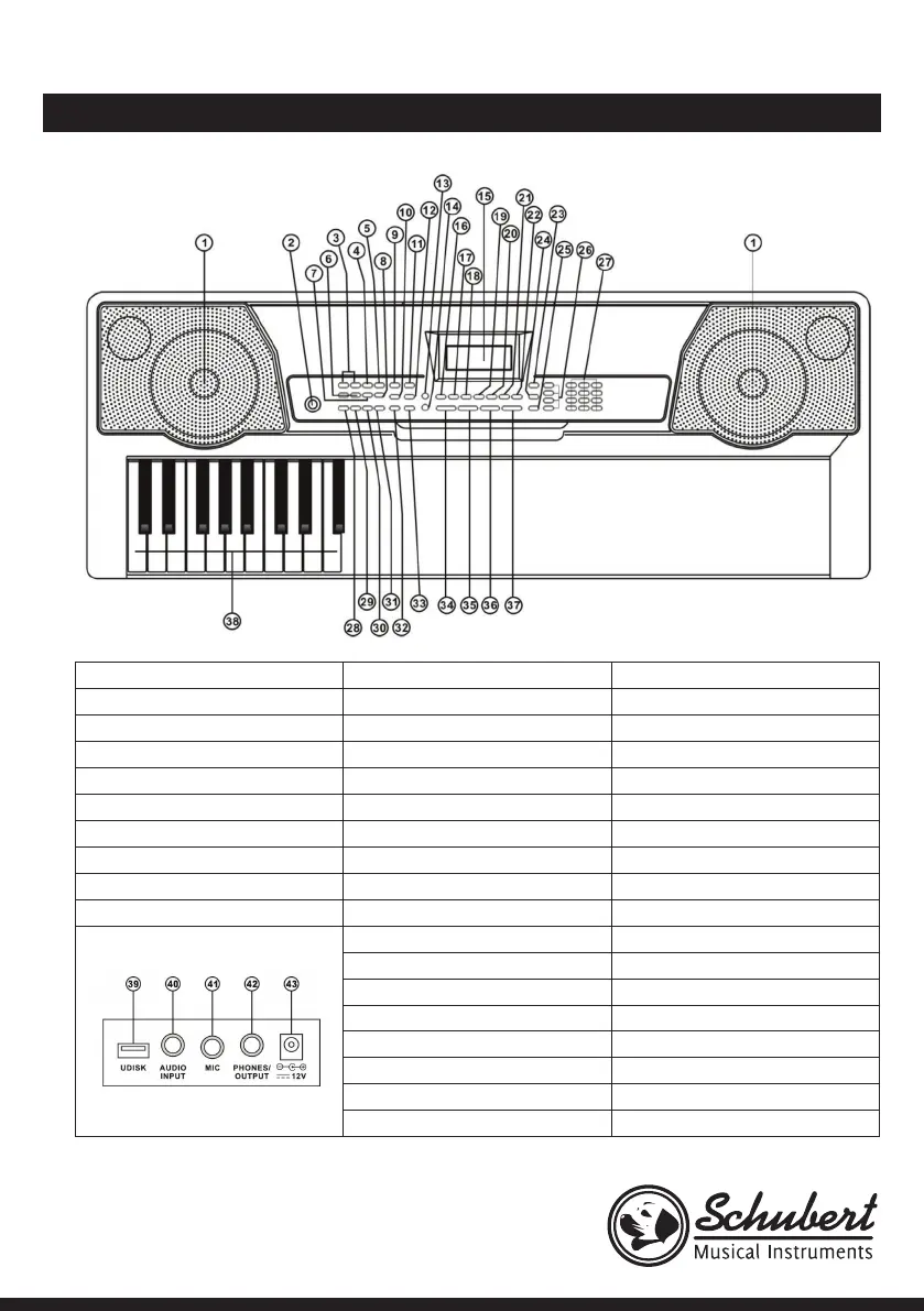 6 Manopola volume MP3 16 Percussioni 34 Volume Master
