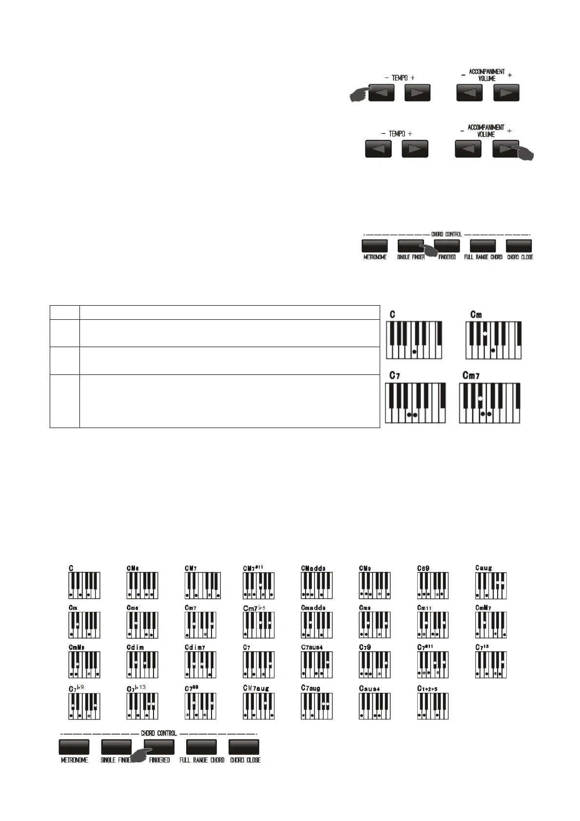 fingers, including large/small chord and large/small 7 chord, to