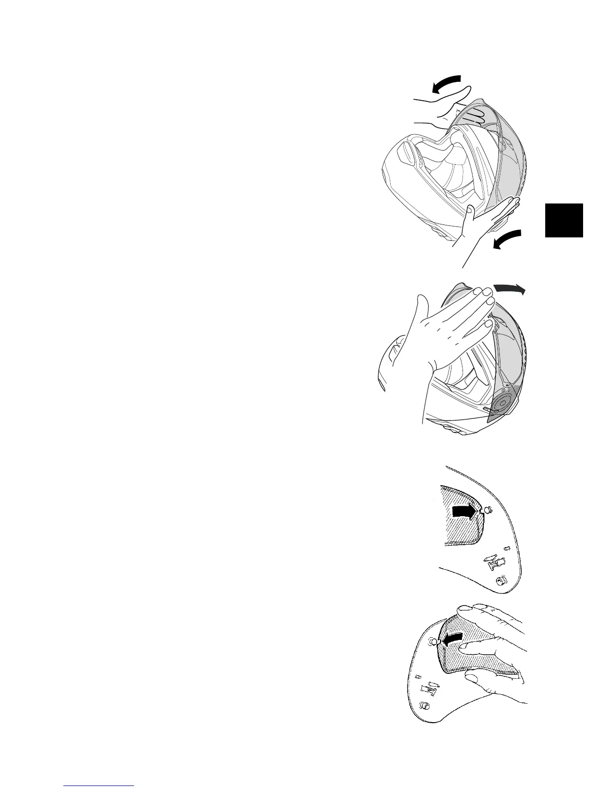 2. Une légère pression sur la visière, en direction