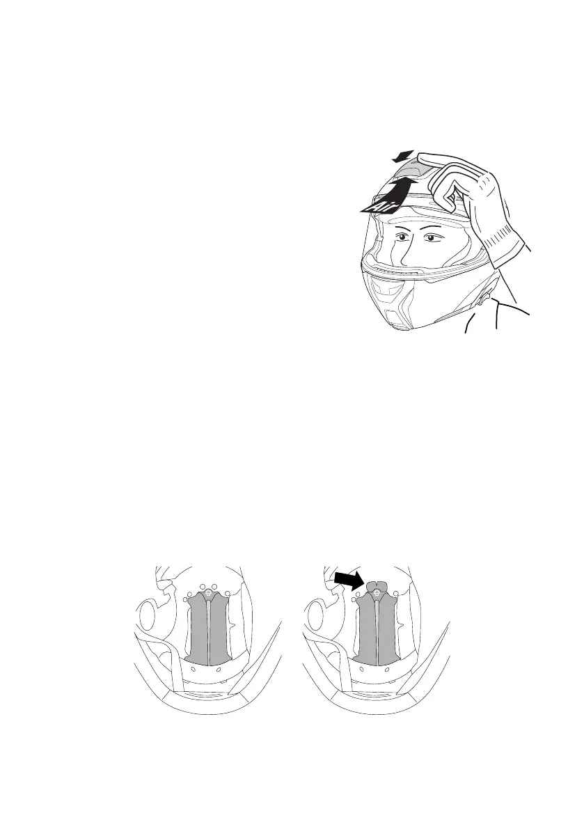 ciò, sollevate il cuscinetto per la testa e aprite i lembi di tessuto situati dietro la