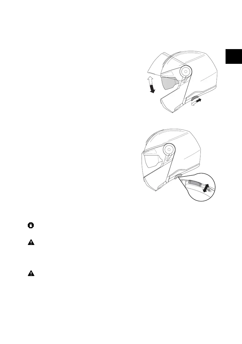 Das Sonnenvisier darf nur über den Schieber betätigt werden.