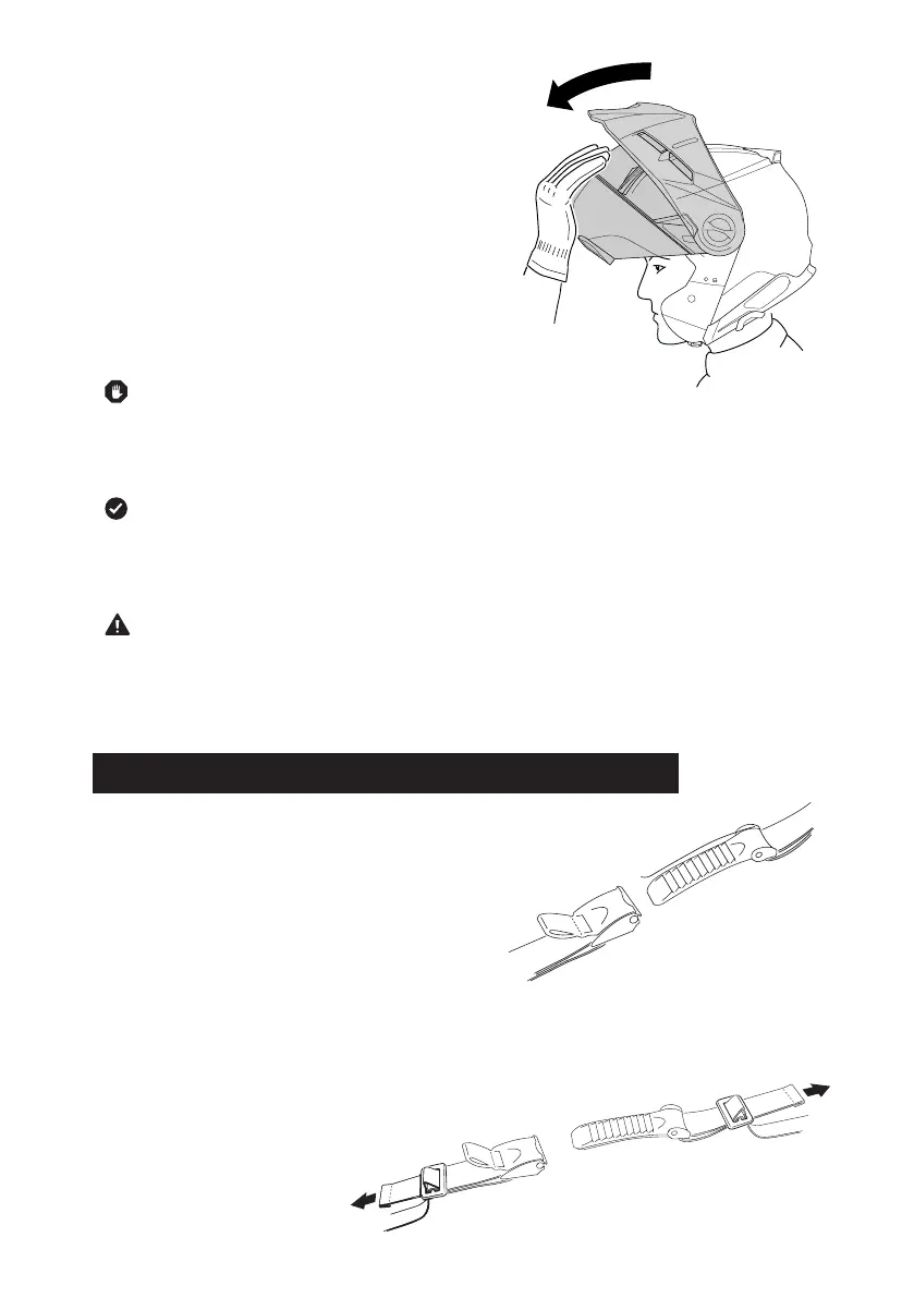 être verrouillée. Il est interdit de conduire avec la mentonnière simplement