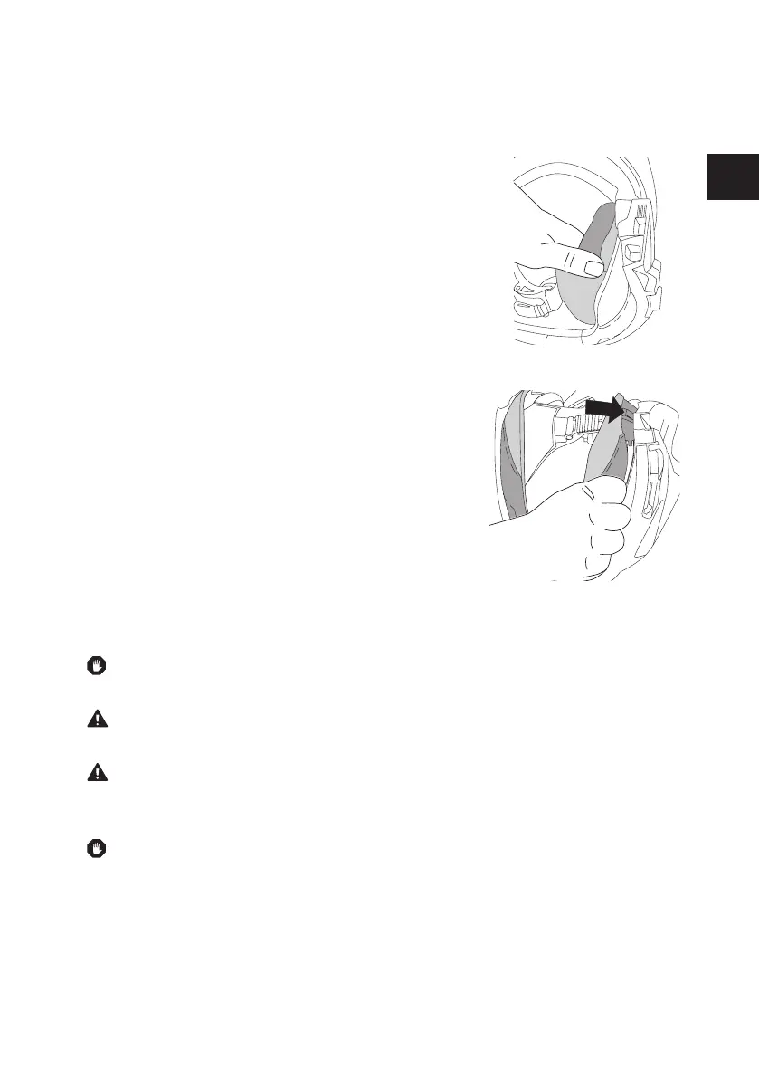den Helm nicht über Spiegel oder Lenkergri hängen.