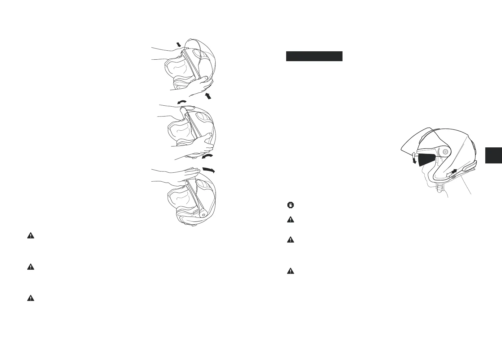 Rijden zonder vizier of met geopend vizier kan oog- en gezichtsletsel door stenen, stof,