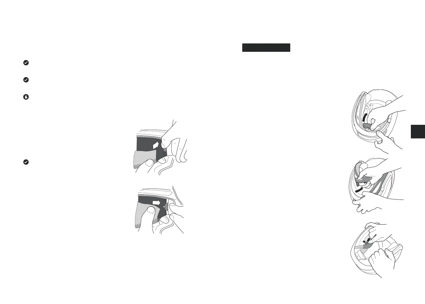 kussens, hoofdvoeringen en hoofdpad zorgen ervoor dat de helm rondom het hoofd goed