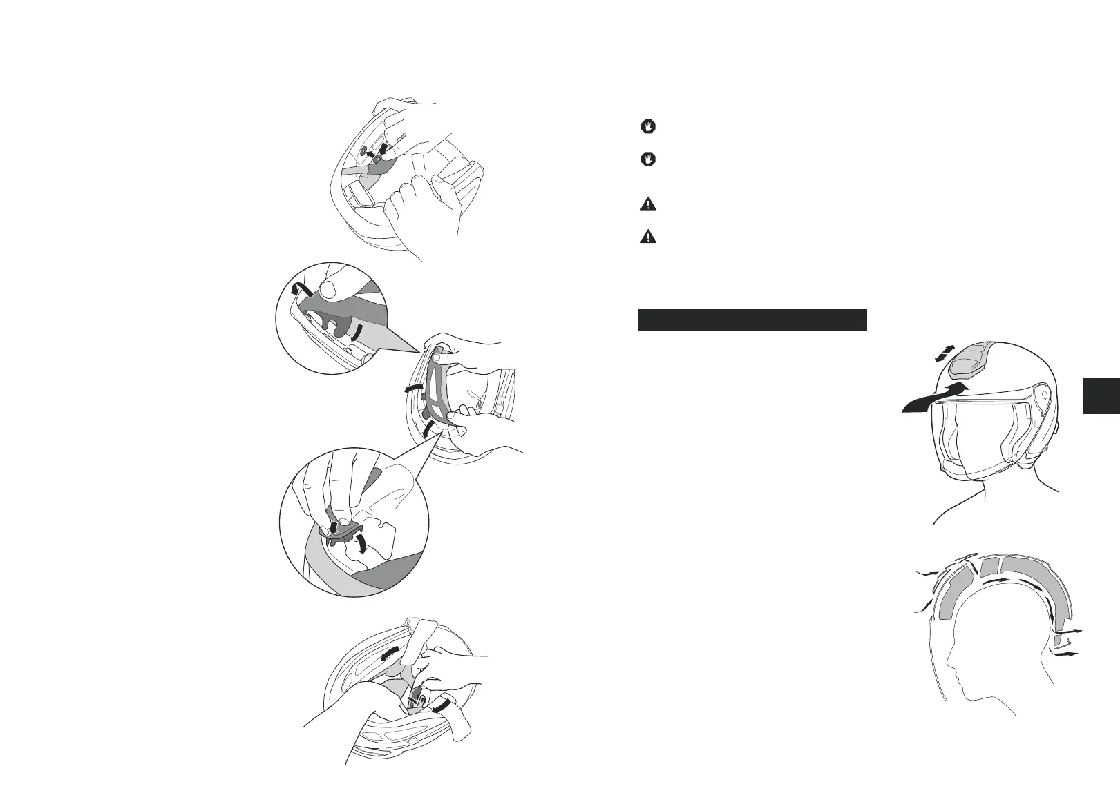 Nunca debe usar el casco si se han retirado partes de la tapicería interior.