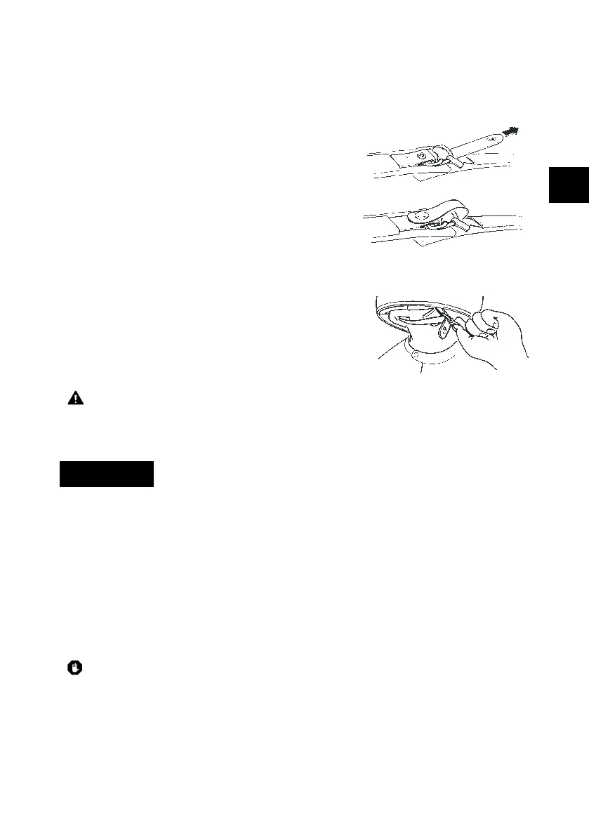 Release the press stud and pull on the red lug of
