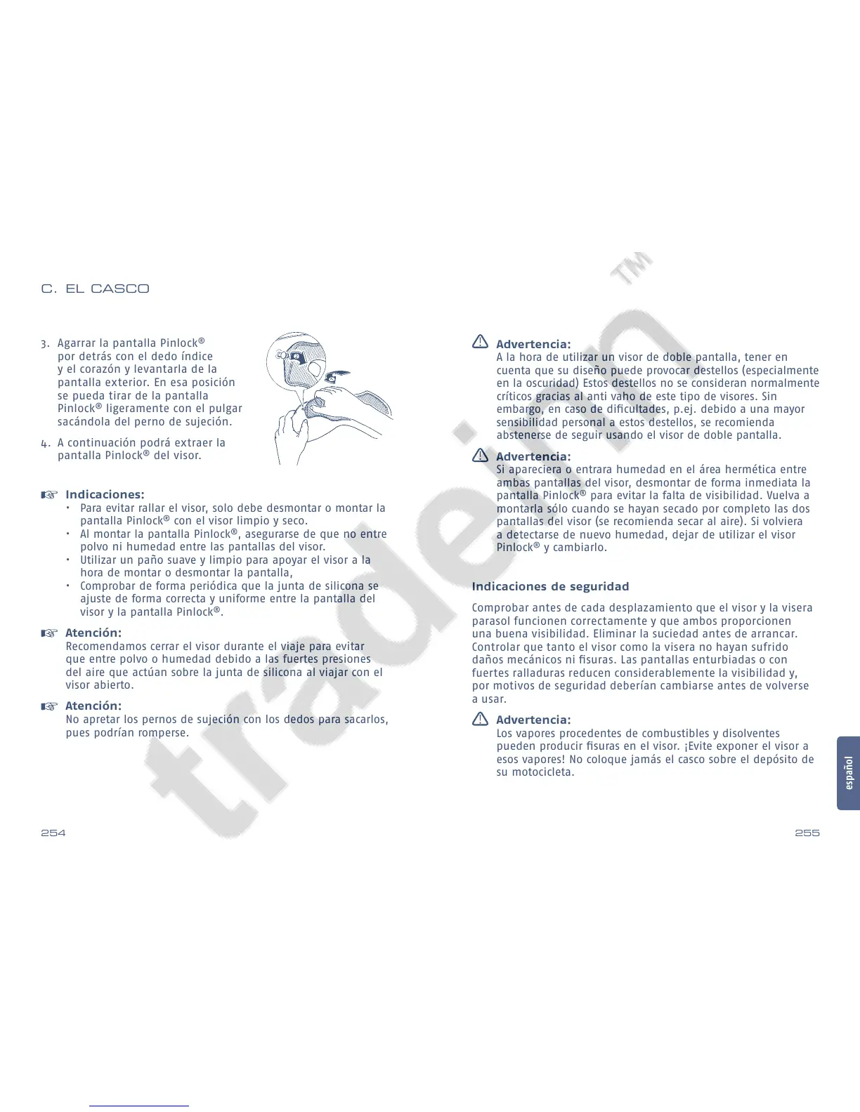 Comprobar antes de cada desplazamiento que el visor y la visera