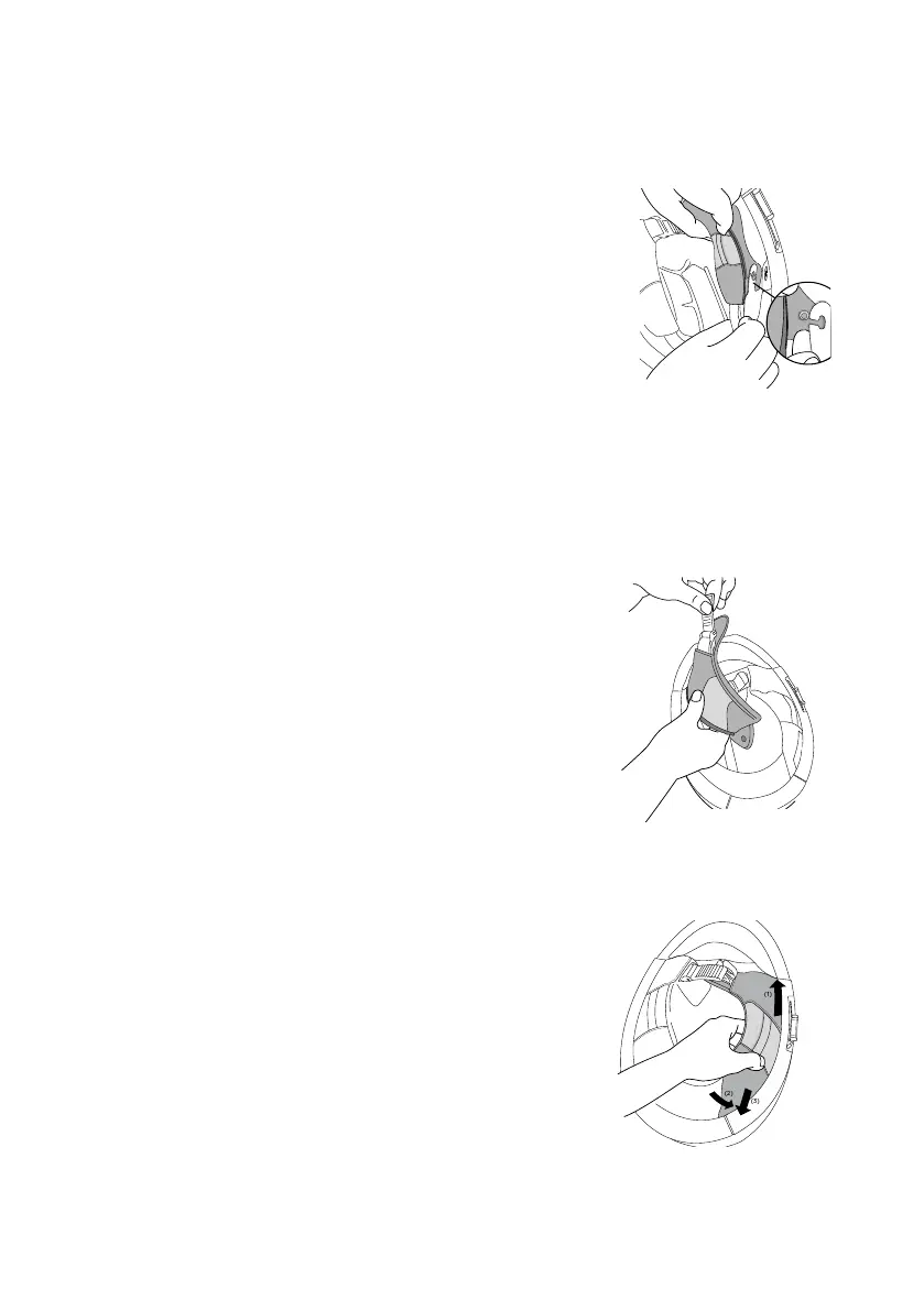 1. Deslice la correa de la barbilla a través del bolsillo