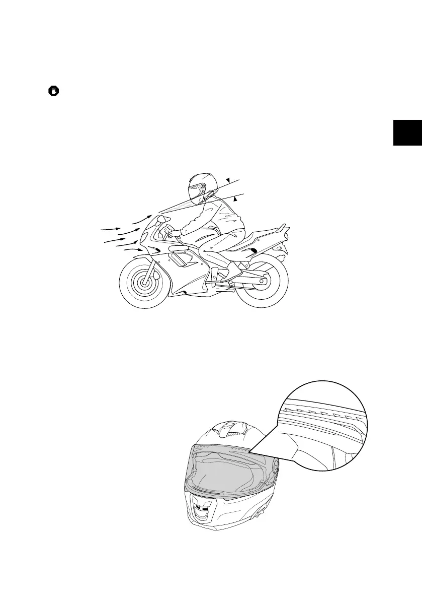 of the helmet. The motorcycle fairing should be adjusted so that the