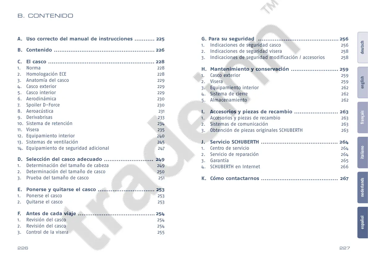 J. Servicio SCHUBERTH .......................................... 264