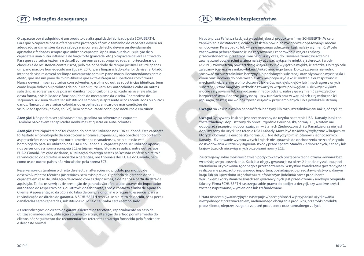 reivindicação do direito de garantia. A SCHUBERTH reserva-se o direito de decidir, se as peças