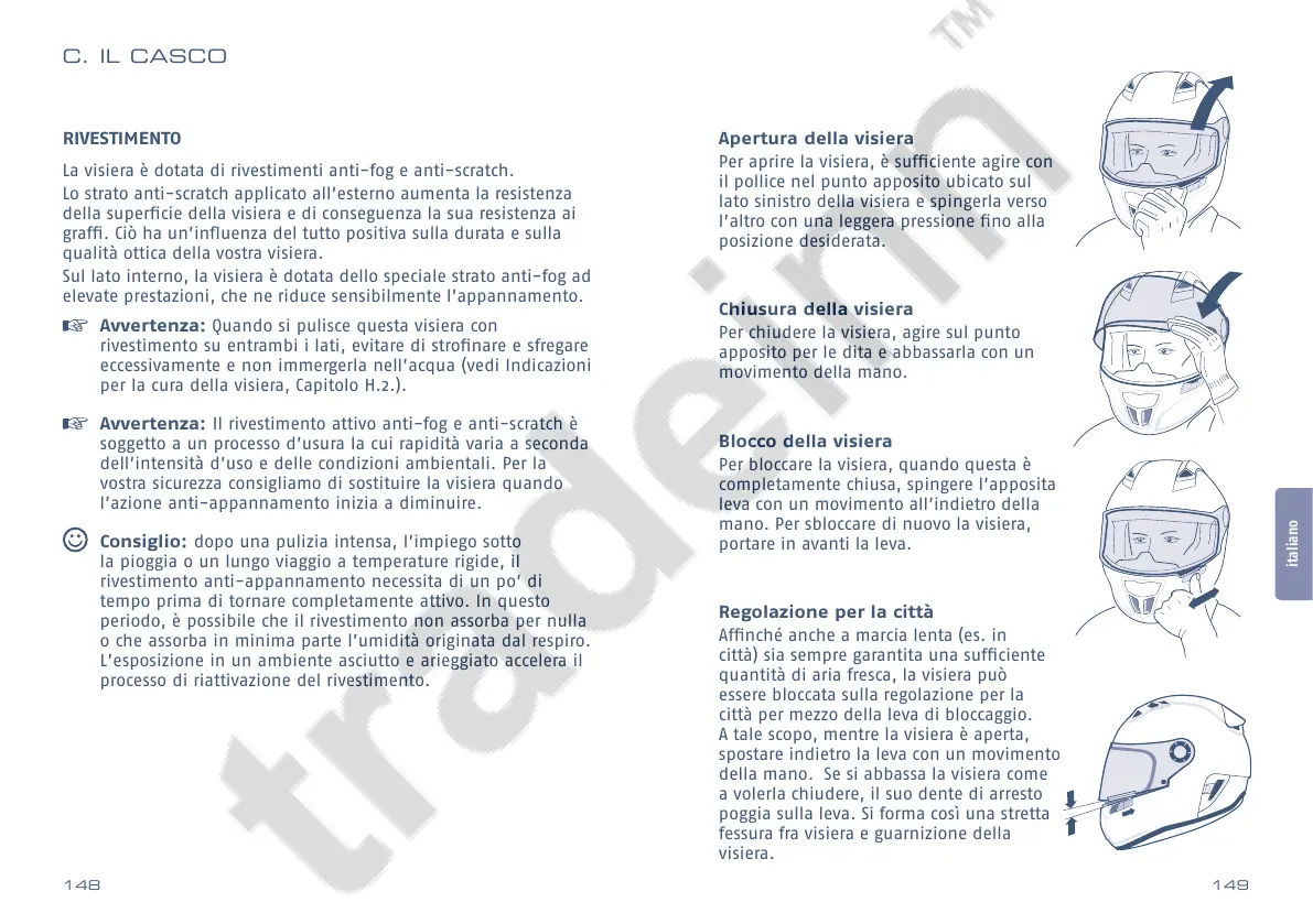 per la cura della visiera, Capitolo H.2.).