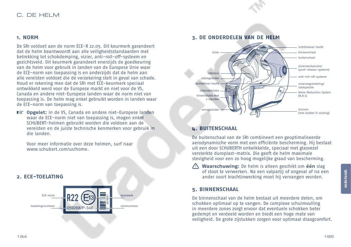 SCHUBERT-helmen gebruikt worden die voldoen aan de