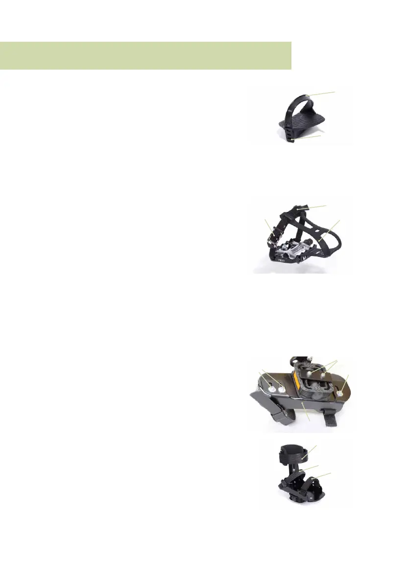 at the front of the pedals (D) prevents the toes from slipping through at the