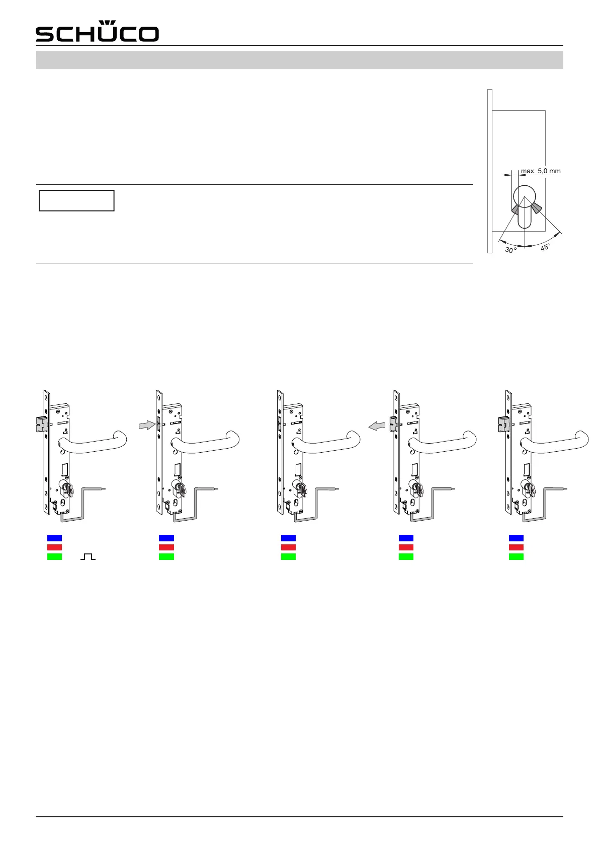Abzugstellung des Schlüssels nicht mehr als 5 mm (30°) Richtung Stulp betragen. Bei