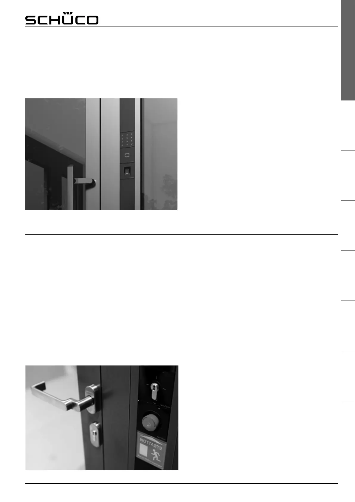 Schlüsselschalter, Nottaster und Hinweisschild bietet Schüco