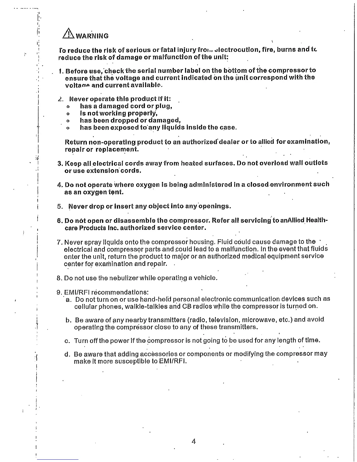 cellular phones, walkie-talkies and CB radios while the compressor is turned on.