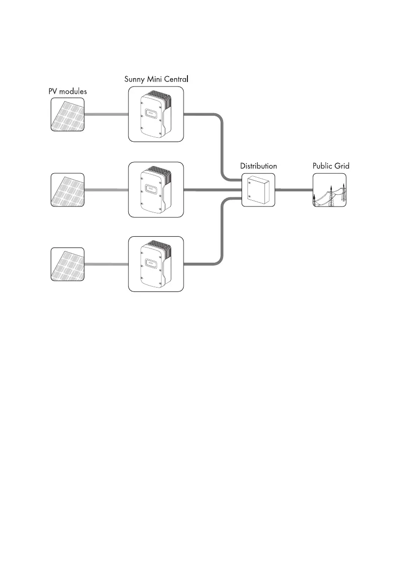 Principle of a grid-connected PV system with a Sunny Mini Central