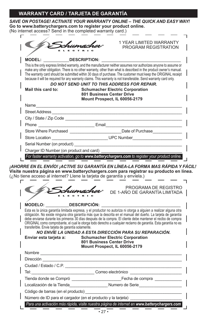 Enviar esta tarjeta a: Schumacher Electric Corporation