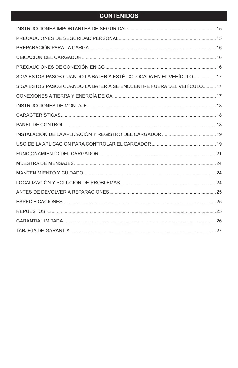 USO DE LA APLICACIÓN PARA CONTROLAR EL CARGADOR ................................................. 19