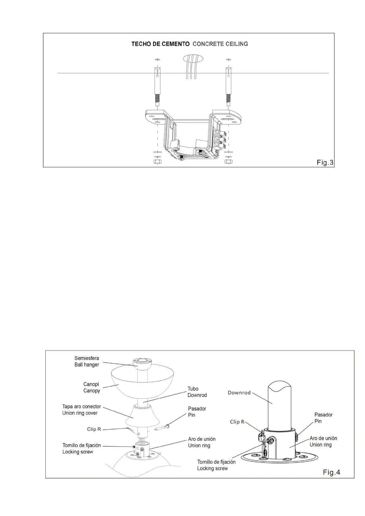 B. Connecting the downrod to the fan body (motor) (Fig.4)