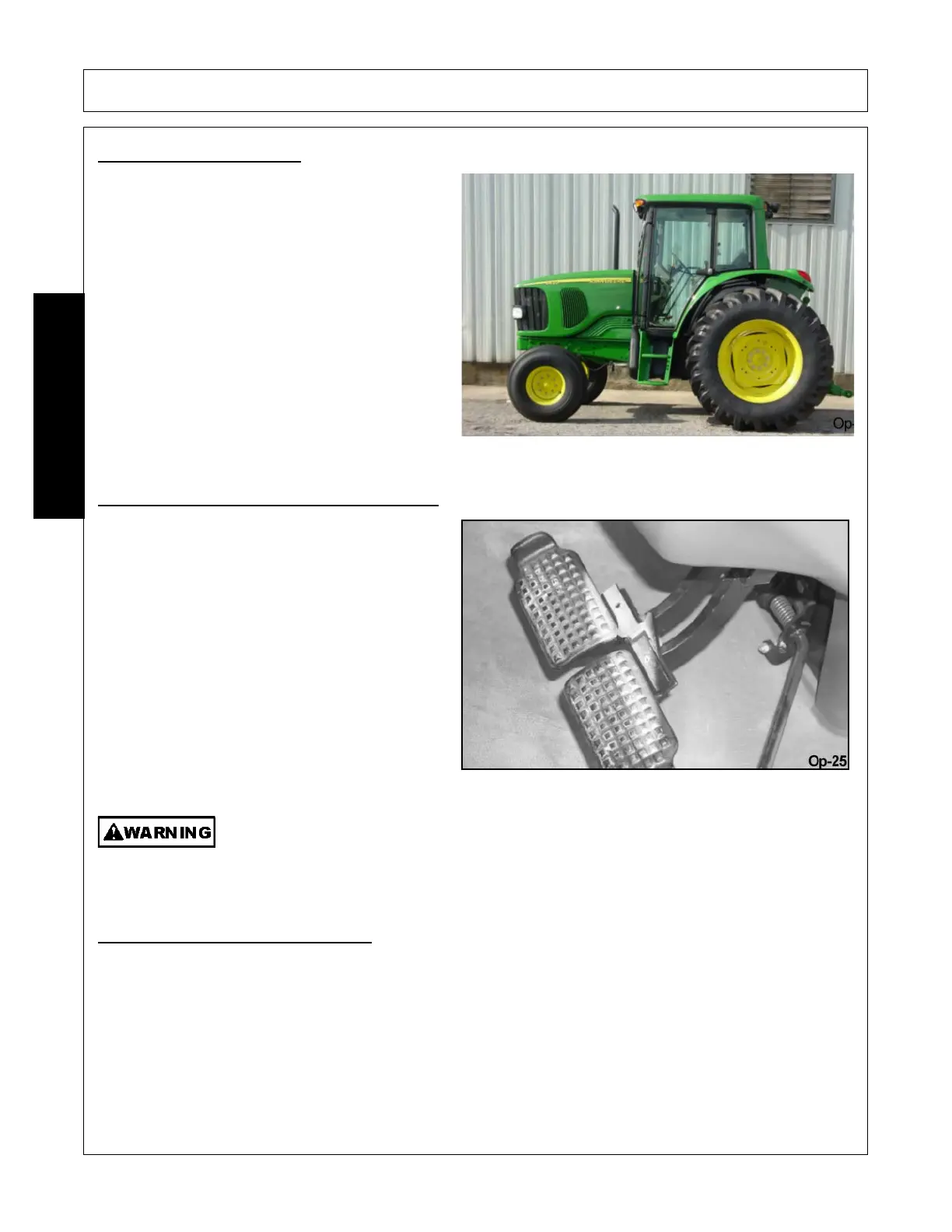 Be aware of the operating conditions. Do not operate the Tractor with weak or faulty brakes.