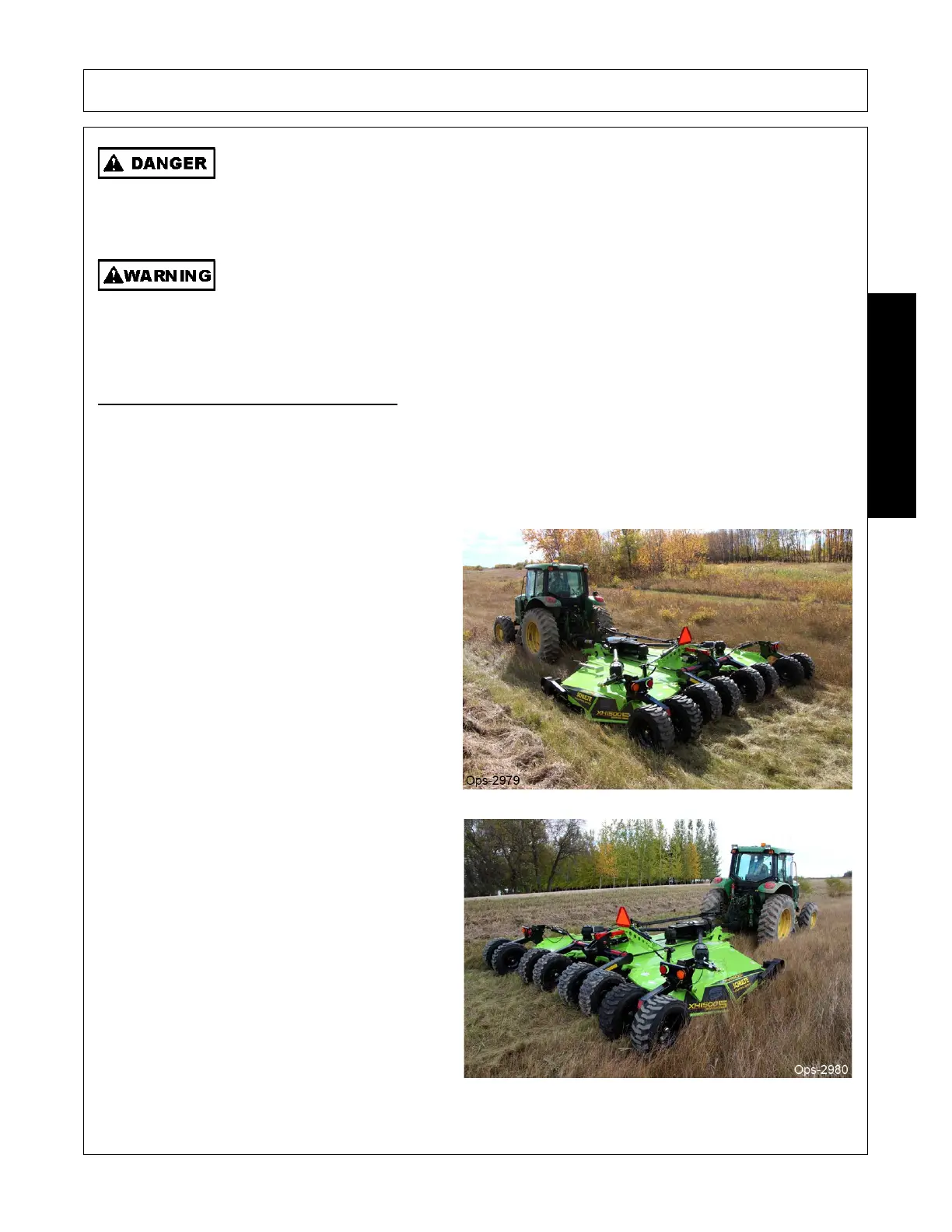 Use extreme care when lowering or unfolding the implement’s wings. Make sure no