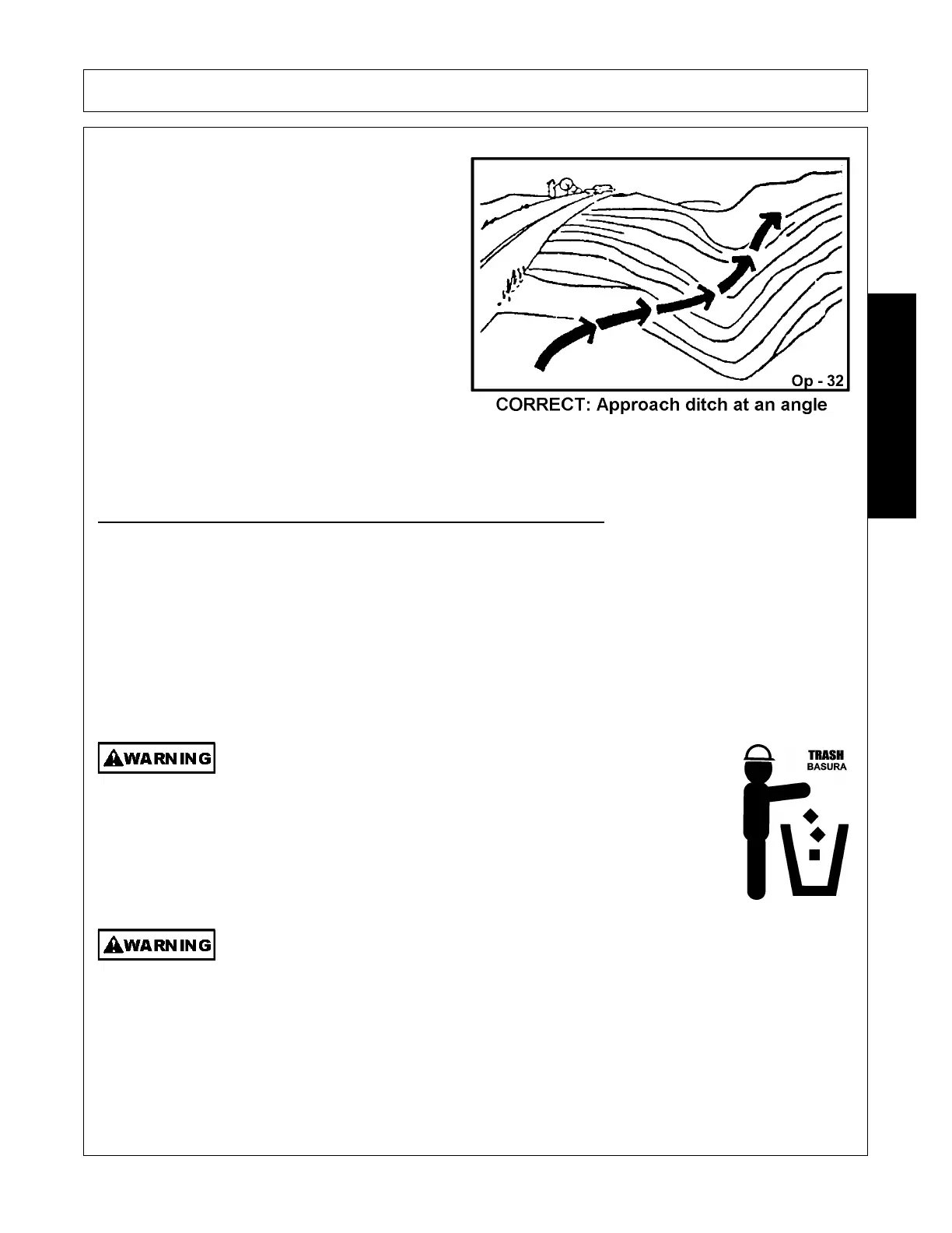 Inclines and ditches should be approached along