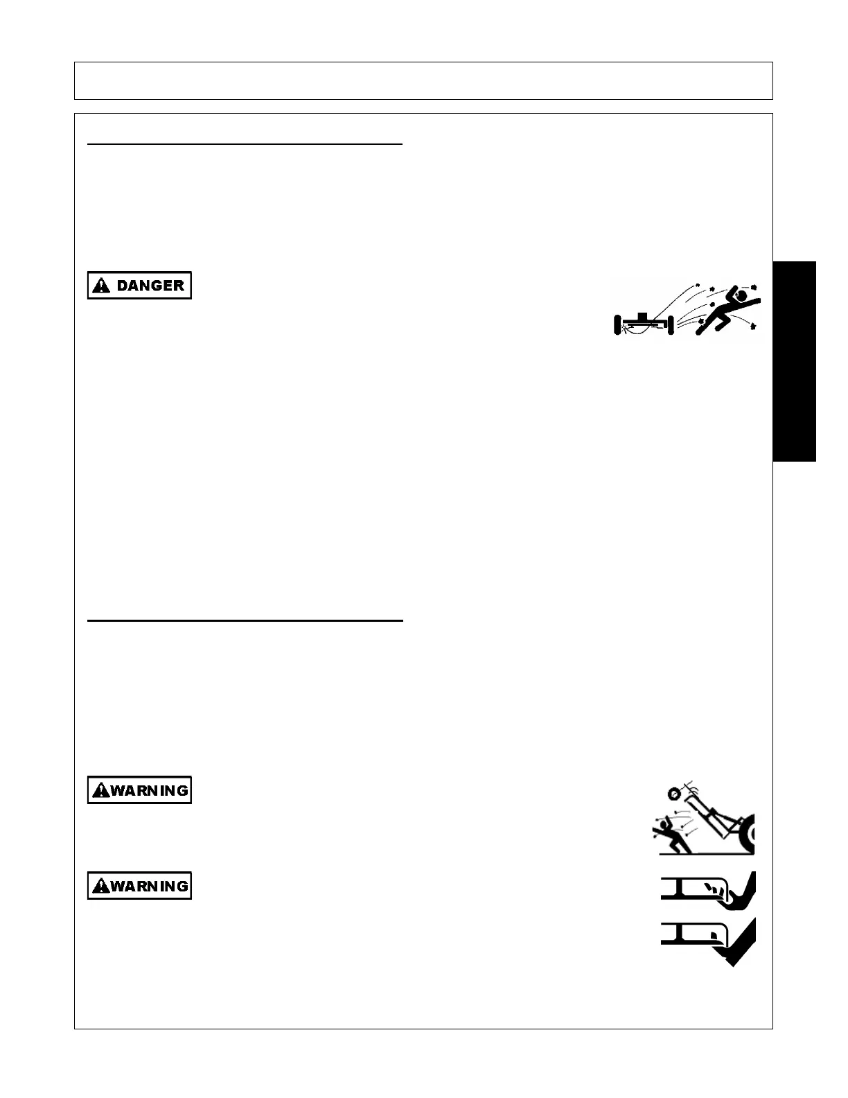 Before engaging the PTO, make certain that the area is clear of bystanders and passersby. The mower wings