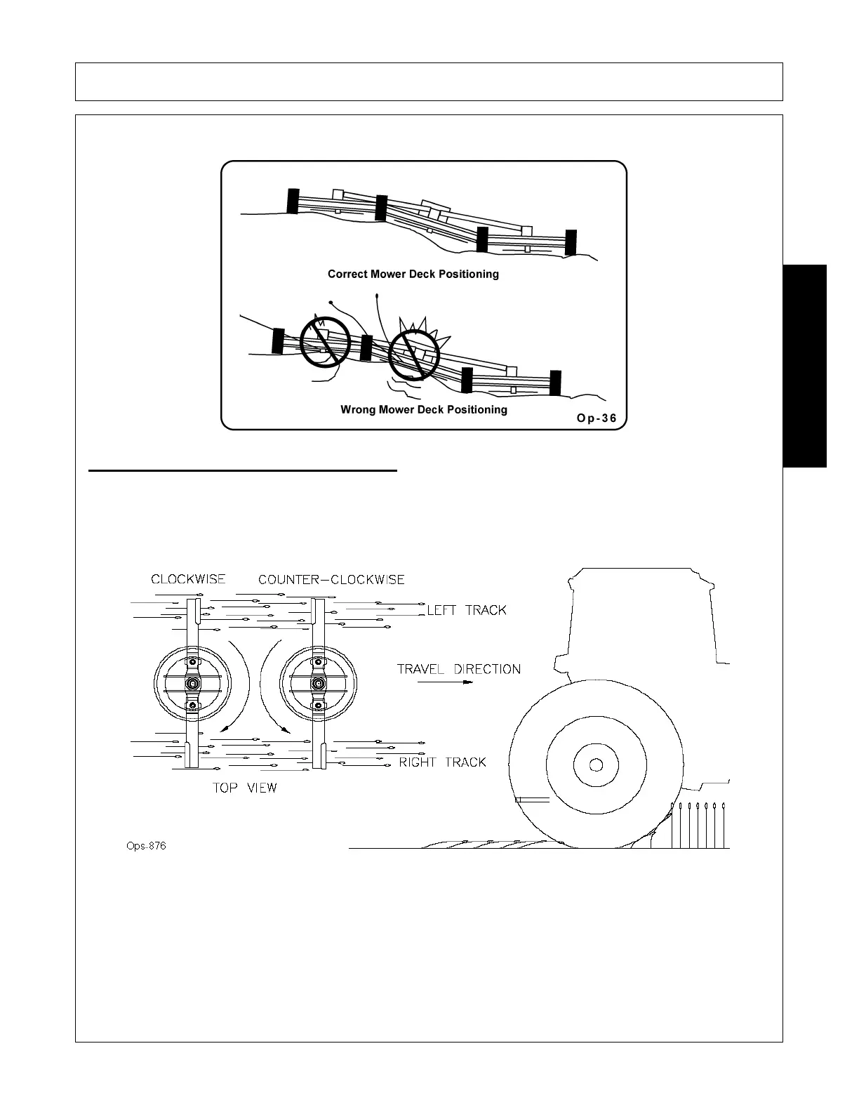 in the left track. The counter-clockwise rotating blade set will do a better job picking up and cutting the left track