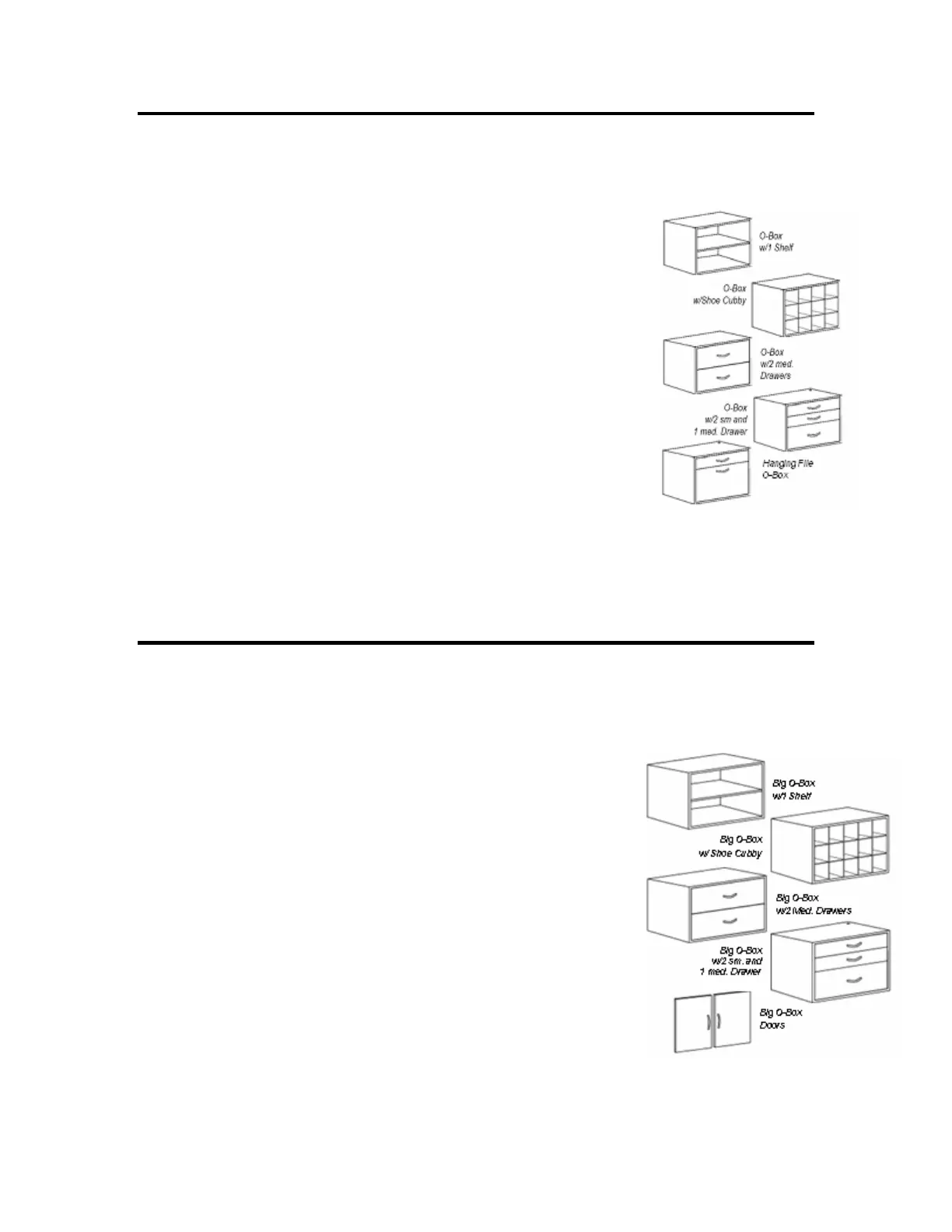 any closet, pantry, linen, or laundry configuration. Each O-Box is