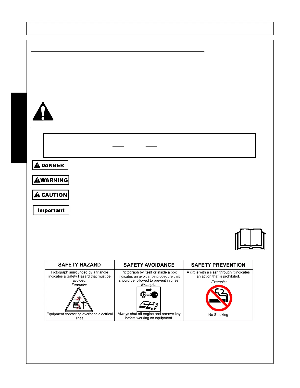 Pictographs are used throughout this manual to help bring your visual attention to safety issues.