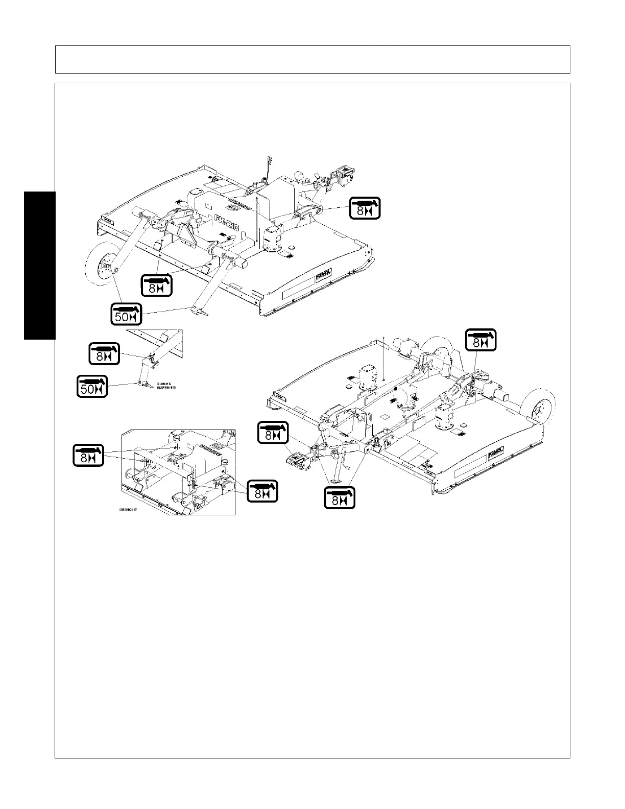 Grease points around the cutter will be identified by one of the following greasing decals. In some cases,