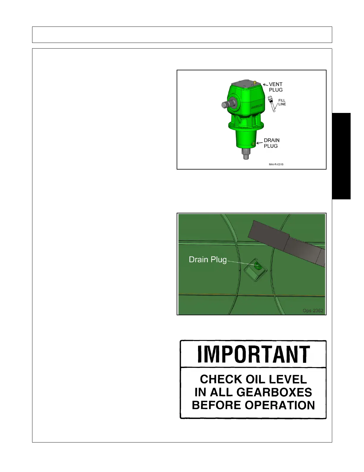 NOTE: Replace oil in all gearboxes after the first 50