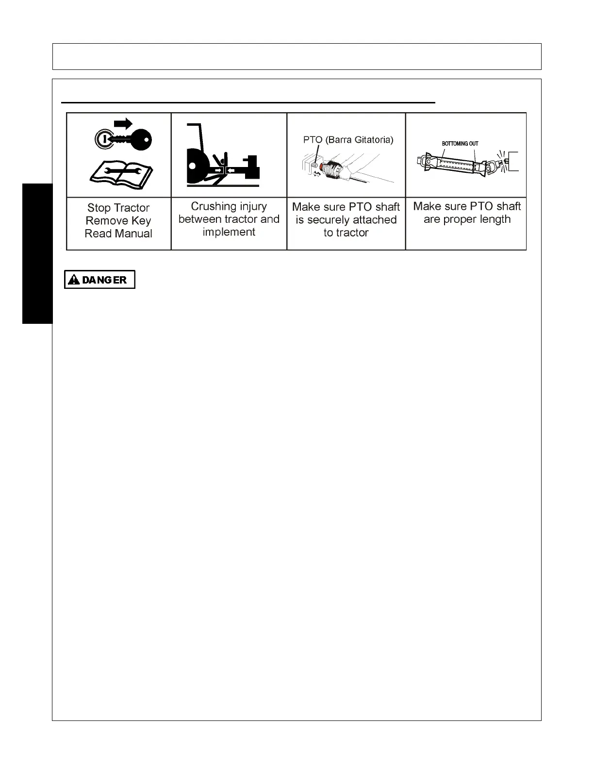 • CHECK driveline for proper length between PTO shaft and implement gearbox shaft.