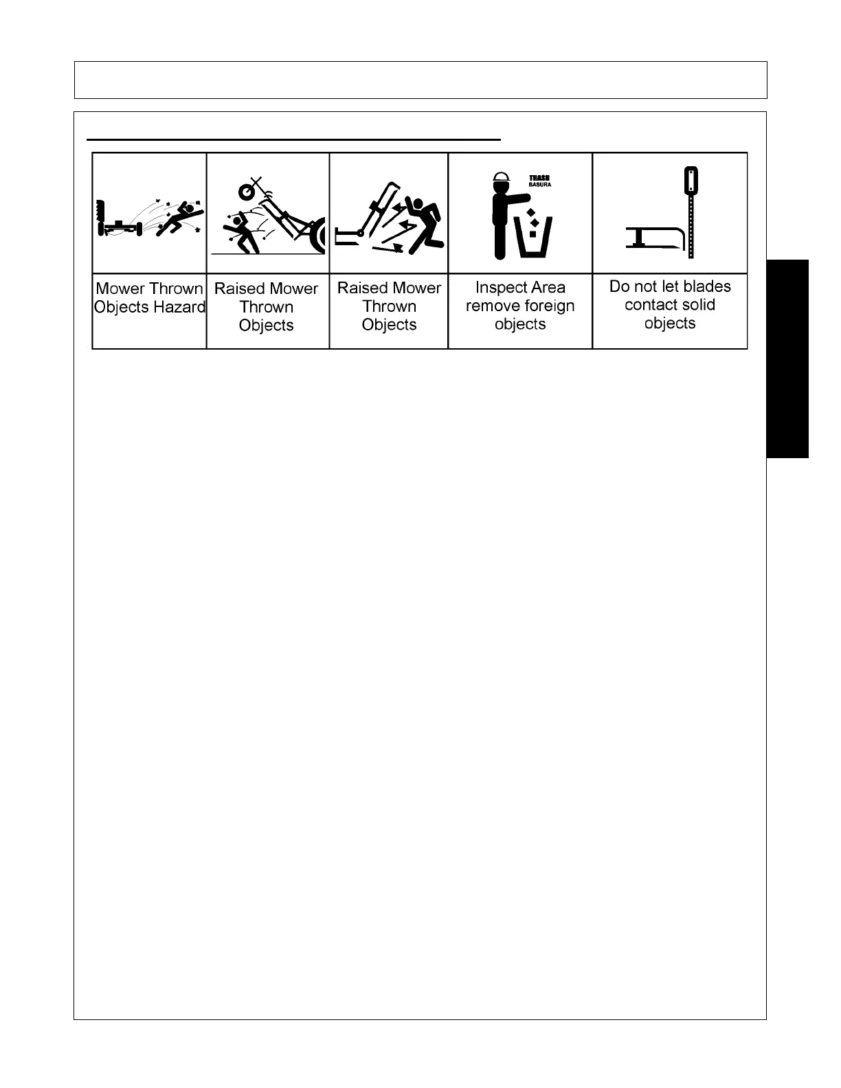 • STOP MOWING immediately if blades strike heavy objects, fixed structures, metal guard rails and