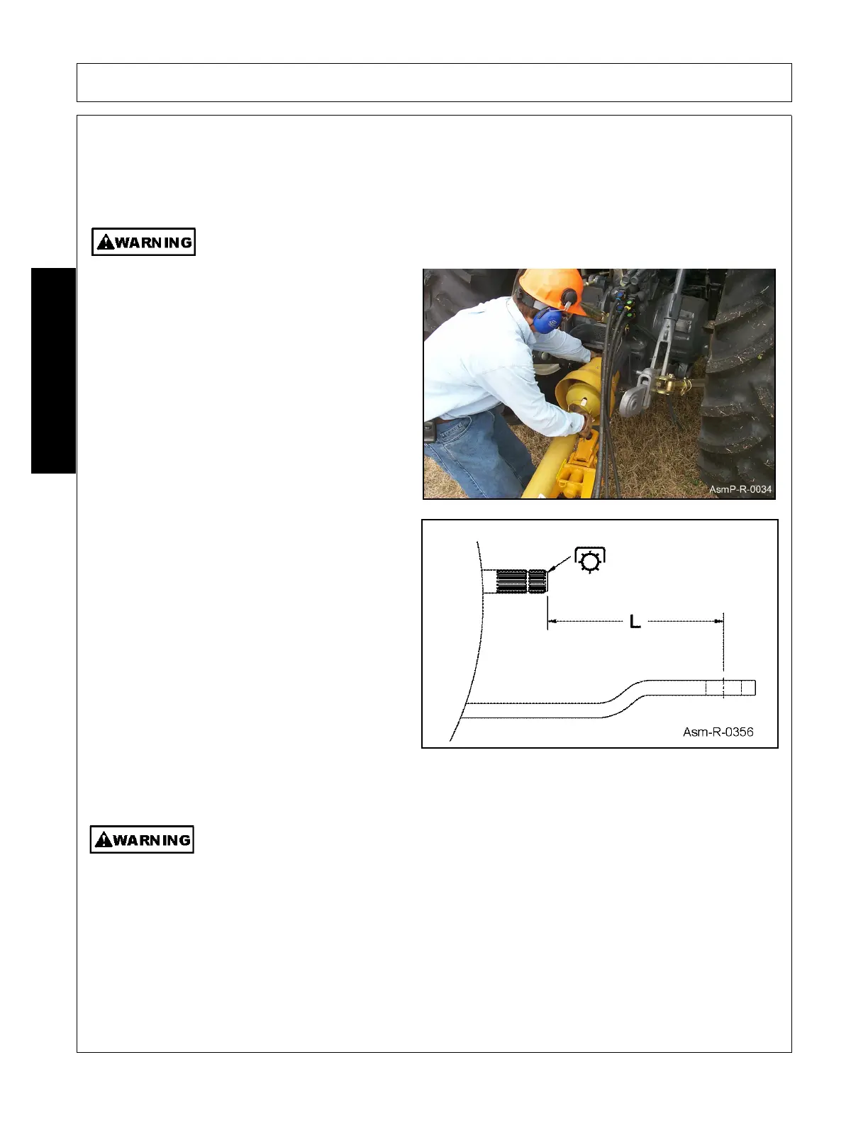 joint. Do not use PTO adaptors. PTO adaptors will invalidate your warranty. See your tractors operator’s