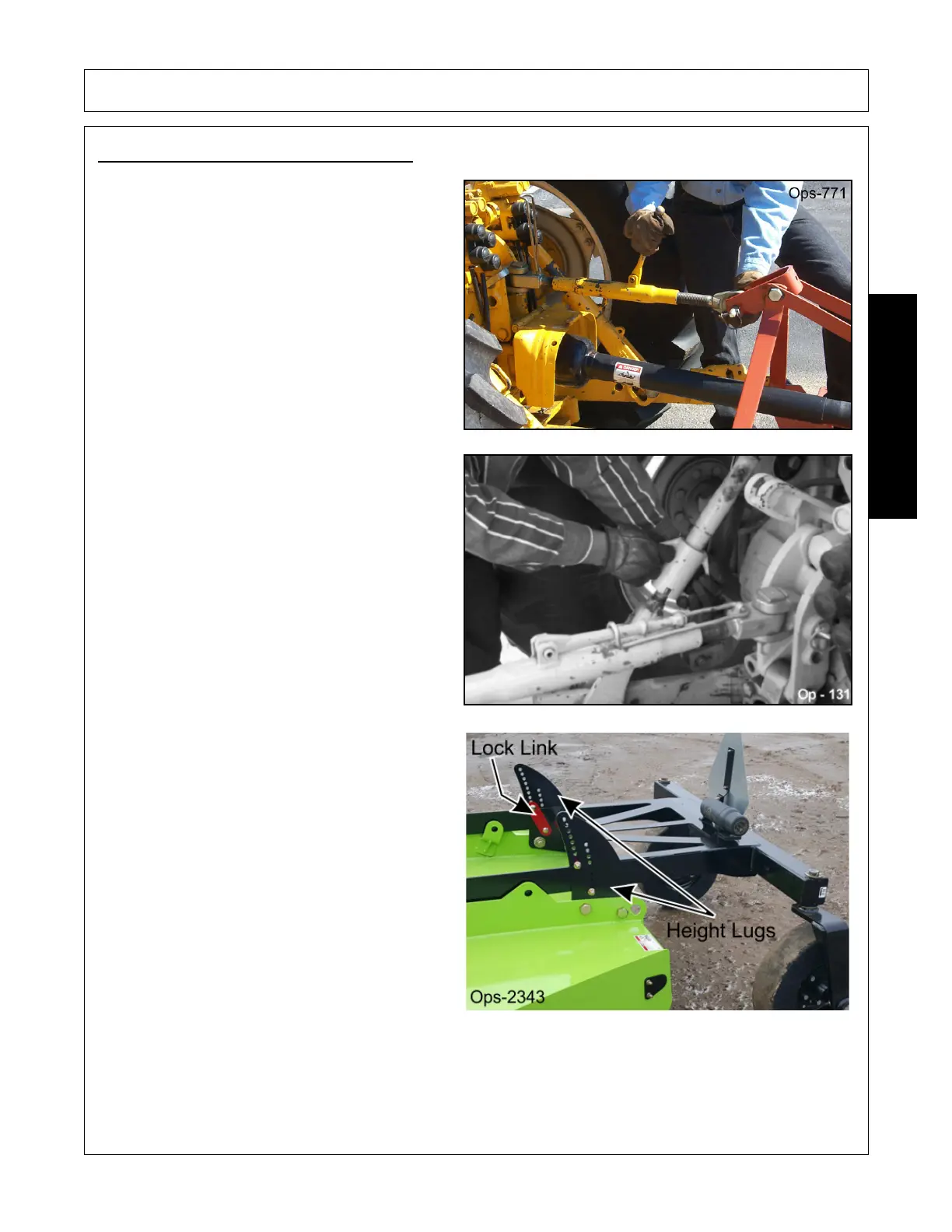 to ground should be 3”. Set the 3-point control