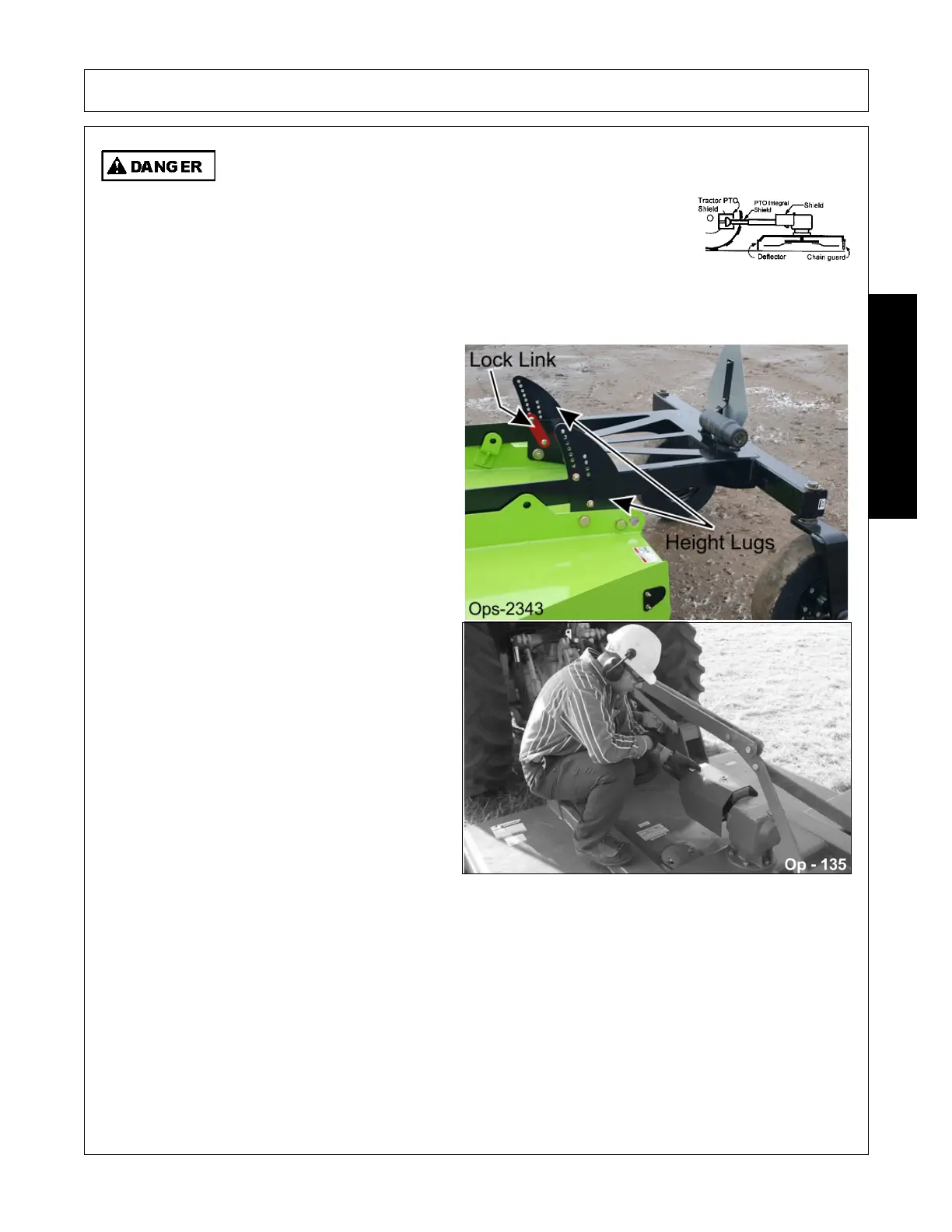 • Ensure the tractor PTO master shield and the