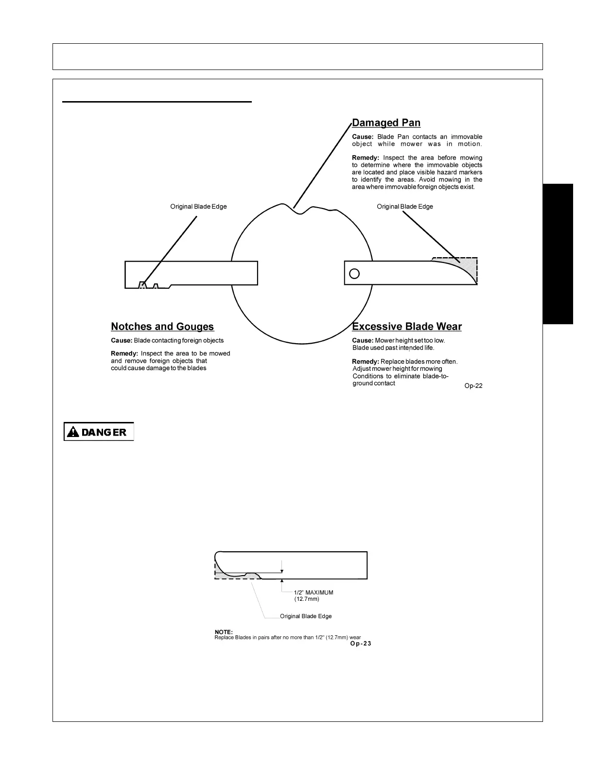 • Gouges or chipped areas in the cutting edge are larger than 1/2” (12.7mm), or