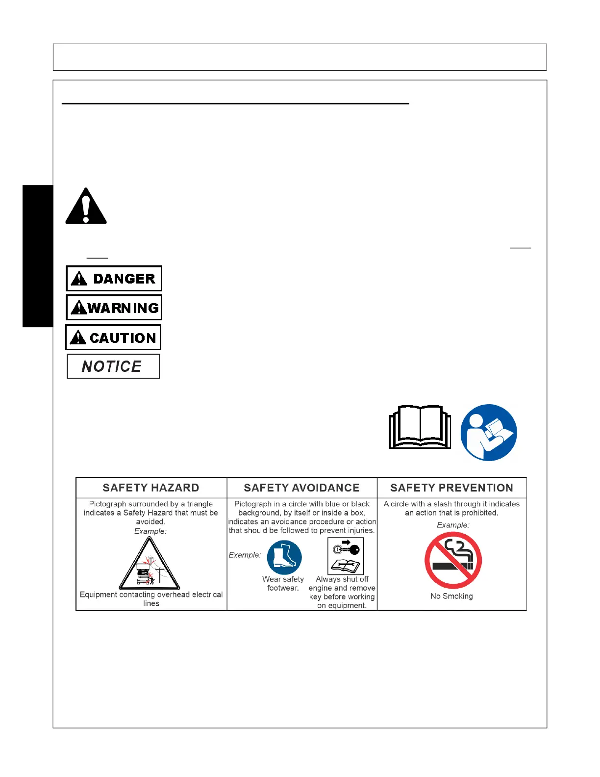 The Safety Alert Symbol combined with a Signal Word, as seen below, is used throughout this