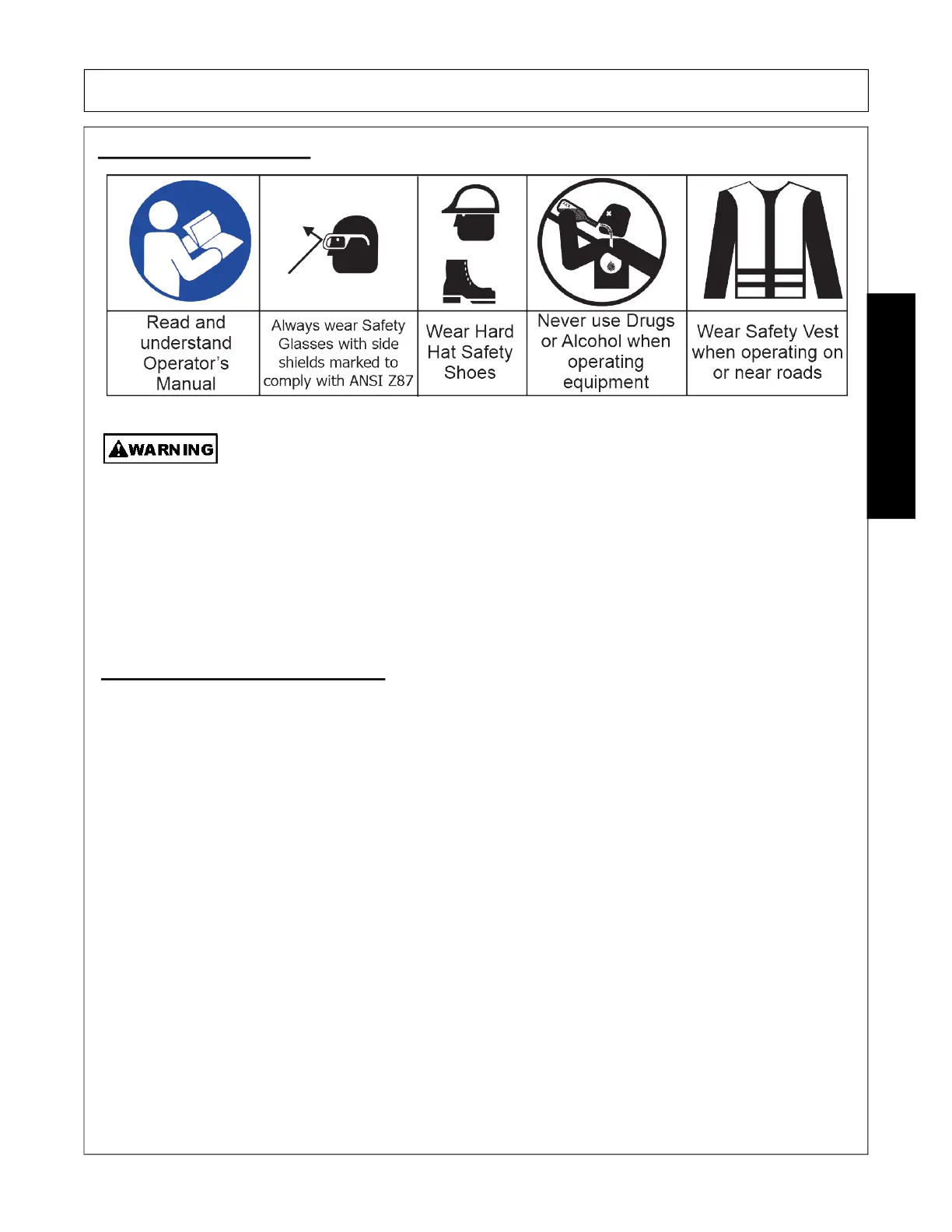 • DO NOT ALLOW anyone to operate equipment under the influence of drug or alcohol.