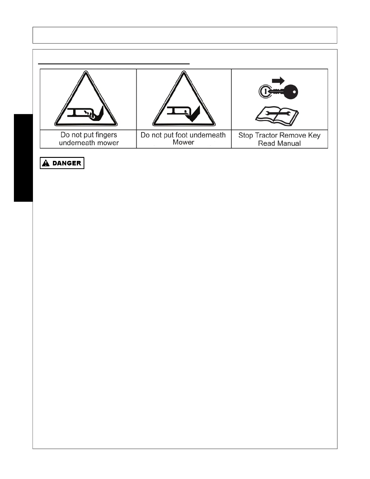 • DO NOT put hands or feet under mower decks