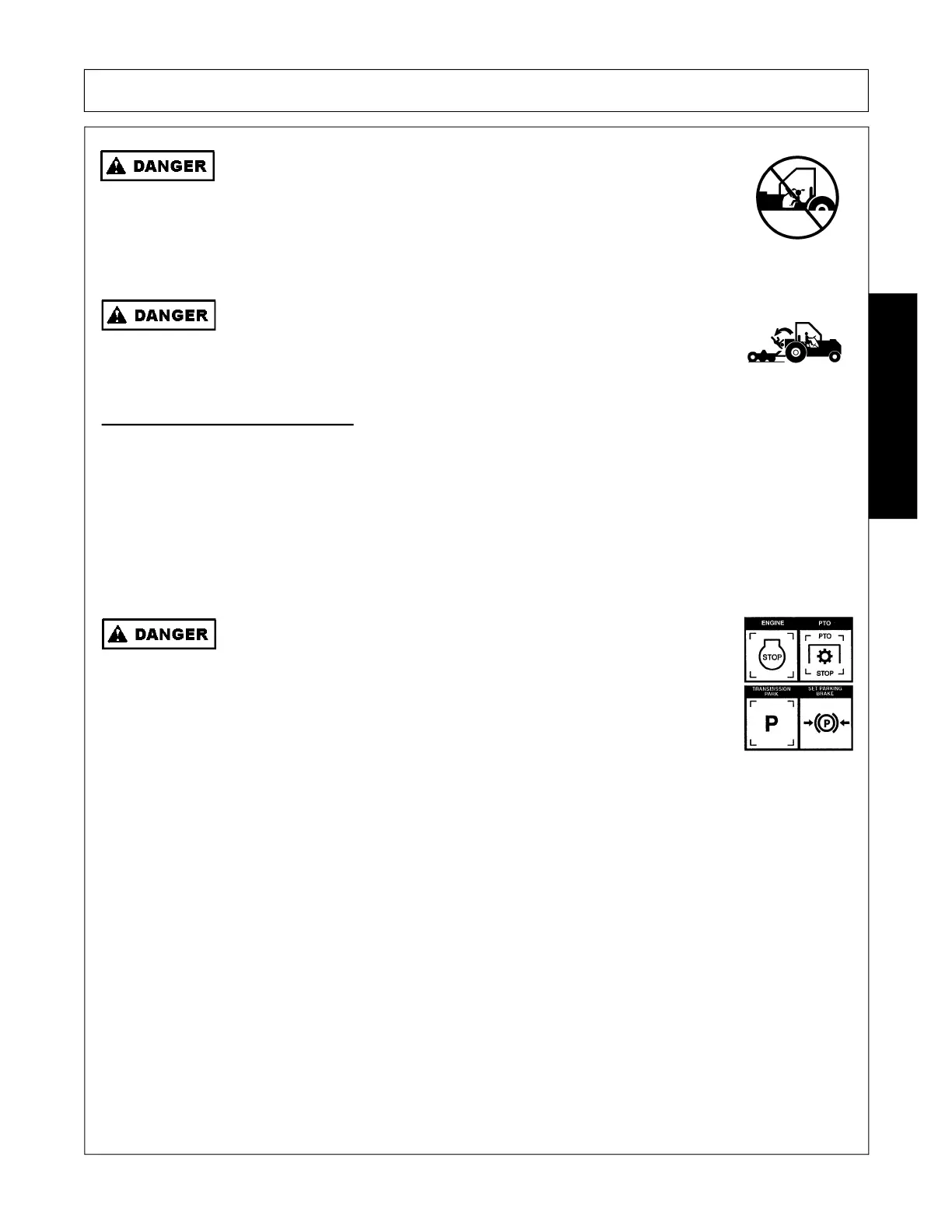 prevent the tractor from rolling. Never dismount a Tractor that is moving