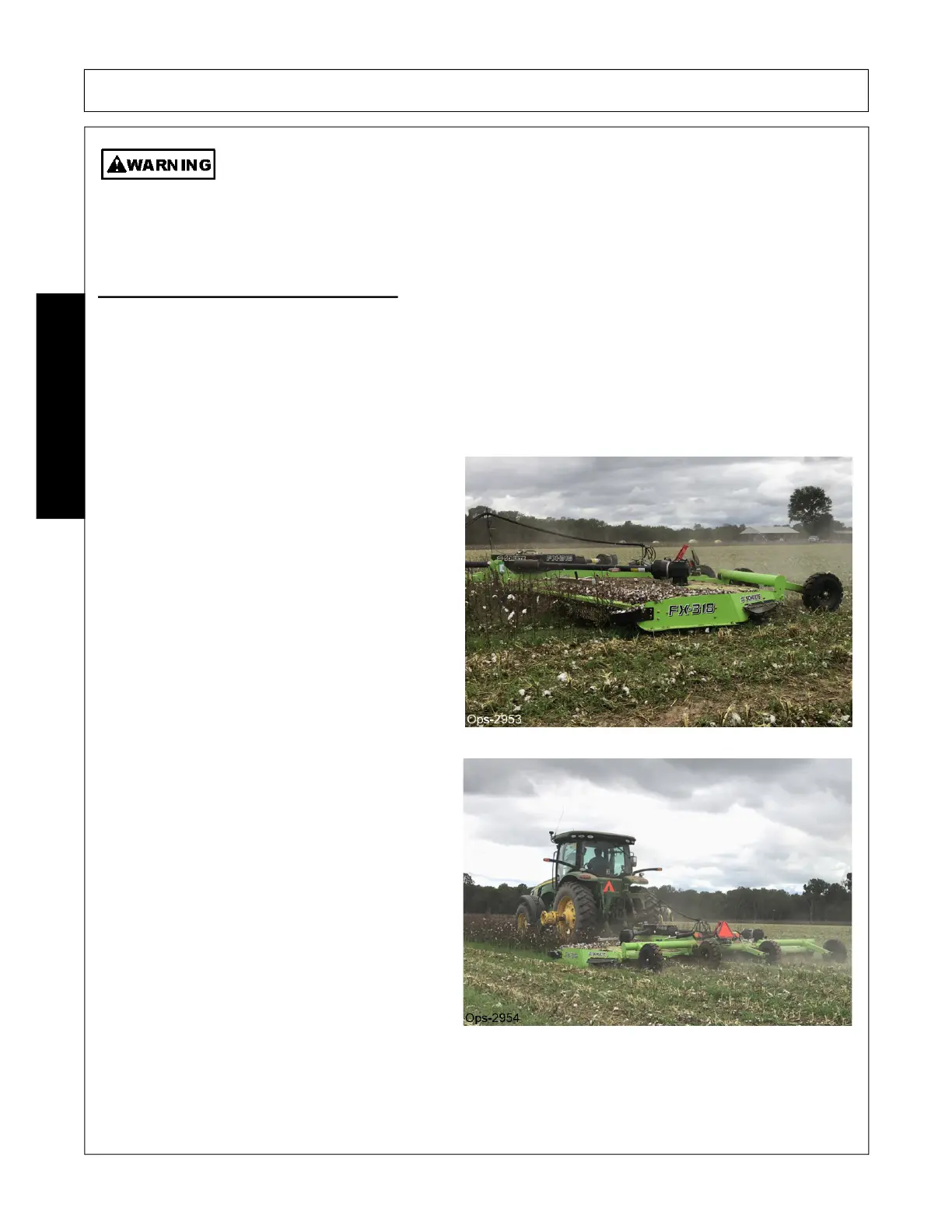 Use extreme care when lowering or unfolding the implement’s wings. Make sure no
